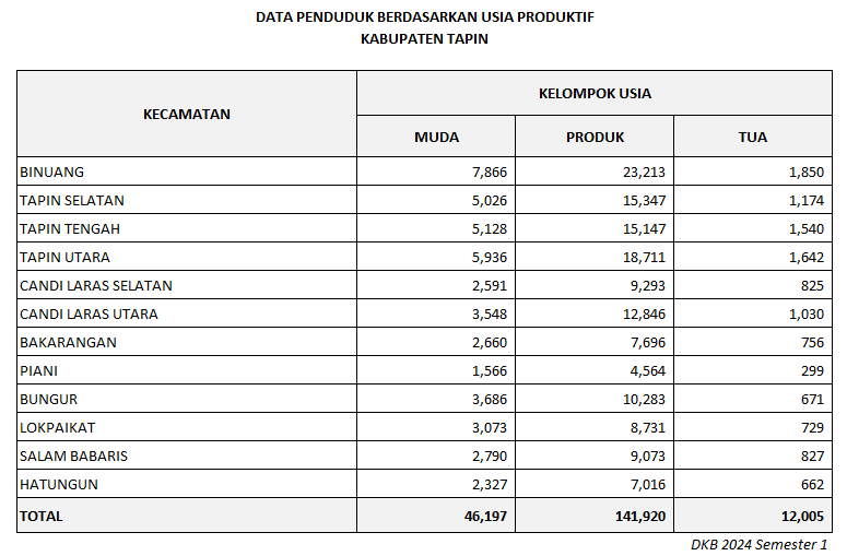 | 6 | DATA PENDUDUK BERDASARKAN JUMLAH USIA PRODUKTIF | Setiap Saat | text | Lihat File |