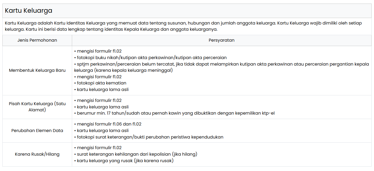 | 14 | PERSYARATAN PEMBUATAN KARTU KELUARGA | Setiap Saat | text | Lihat File |