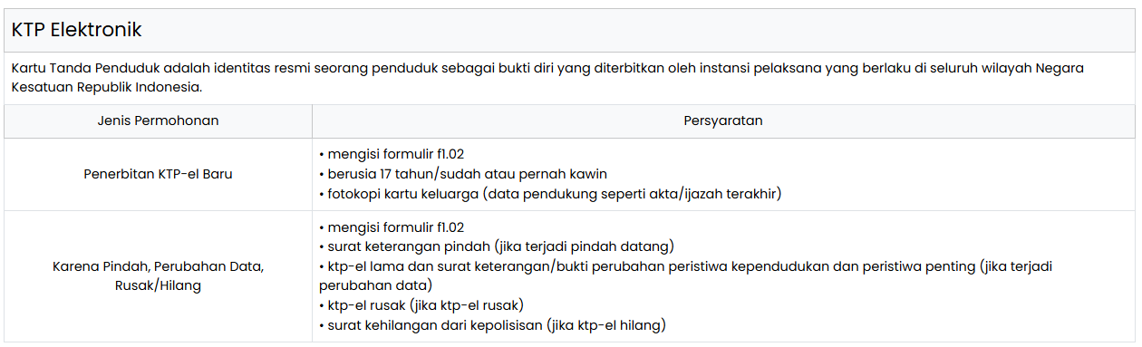 | 15 | PERSYARATAN PEMBUATAN KTP | Setiap Saat | text | Lihat File |