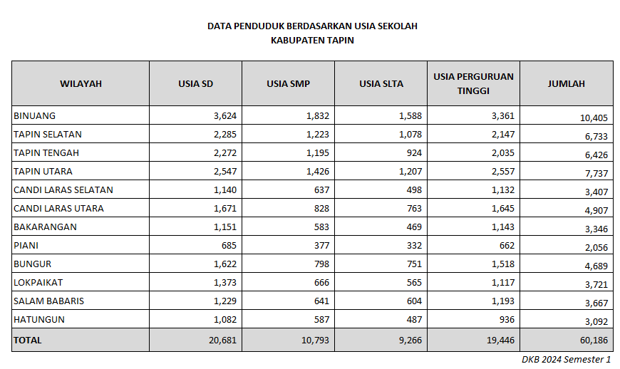 | 7 | DATA PENDUDUK BRDASARKAN USIA SEKELAH | Setiap Saat | text | Lihat File |